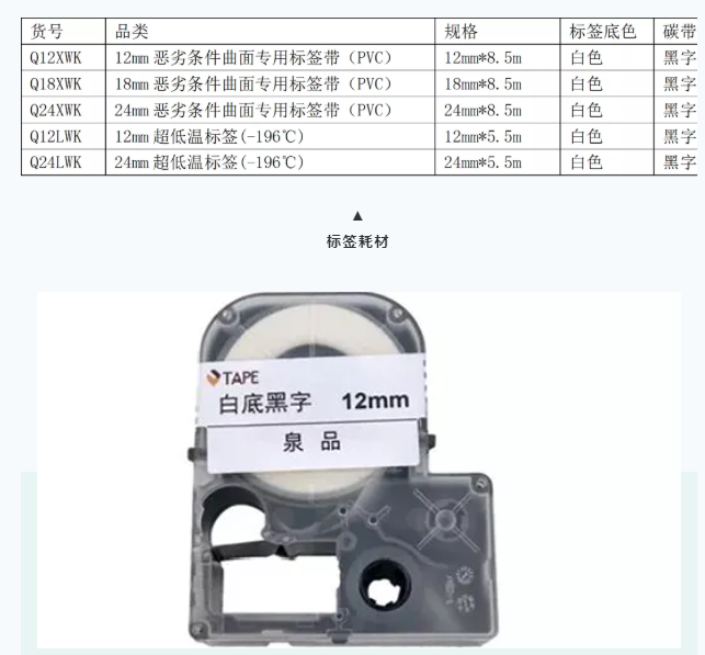 适用(yòng)标簽帶:多(duō)種連續标簽寬度、耐低溫标簽